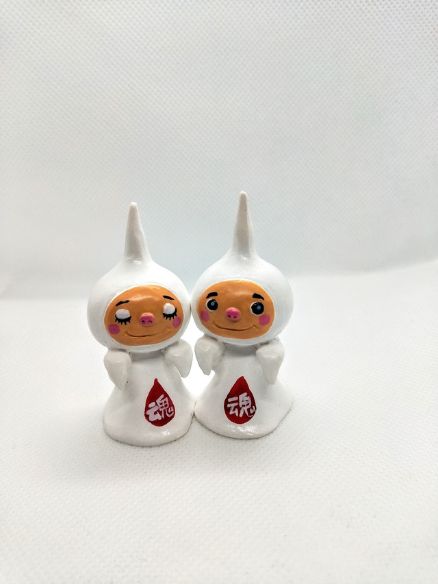 沖縄の方言でまぶいは 魂という意味。 目を開けた子が男の子のまぶいくん 目を閉じた子が女の子のまぶいちゃん 高さ 6.2センチ